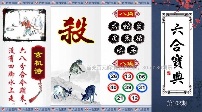 102期:九肖【猪龙鼠牛马兔鸡虎狗】开:鼠30准 |