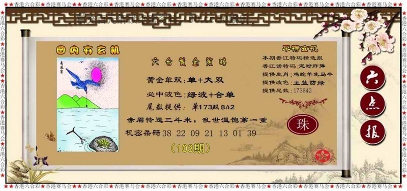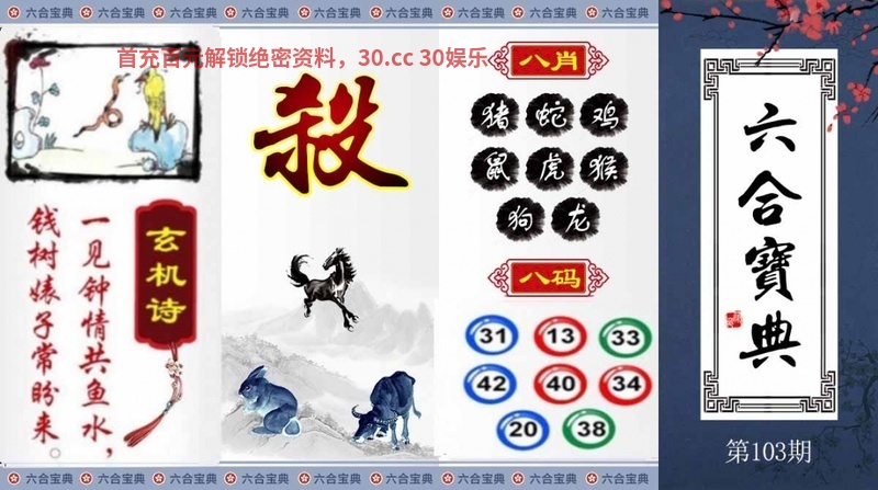 103期:九肖【鼠猪鸡兔龙牛蛇马虎】开:牛41准 |