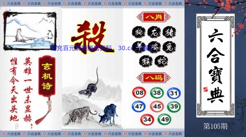 105期:九肖【马猴兔羊龙蛇鼠鸡牛】开:狗44错 |